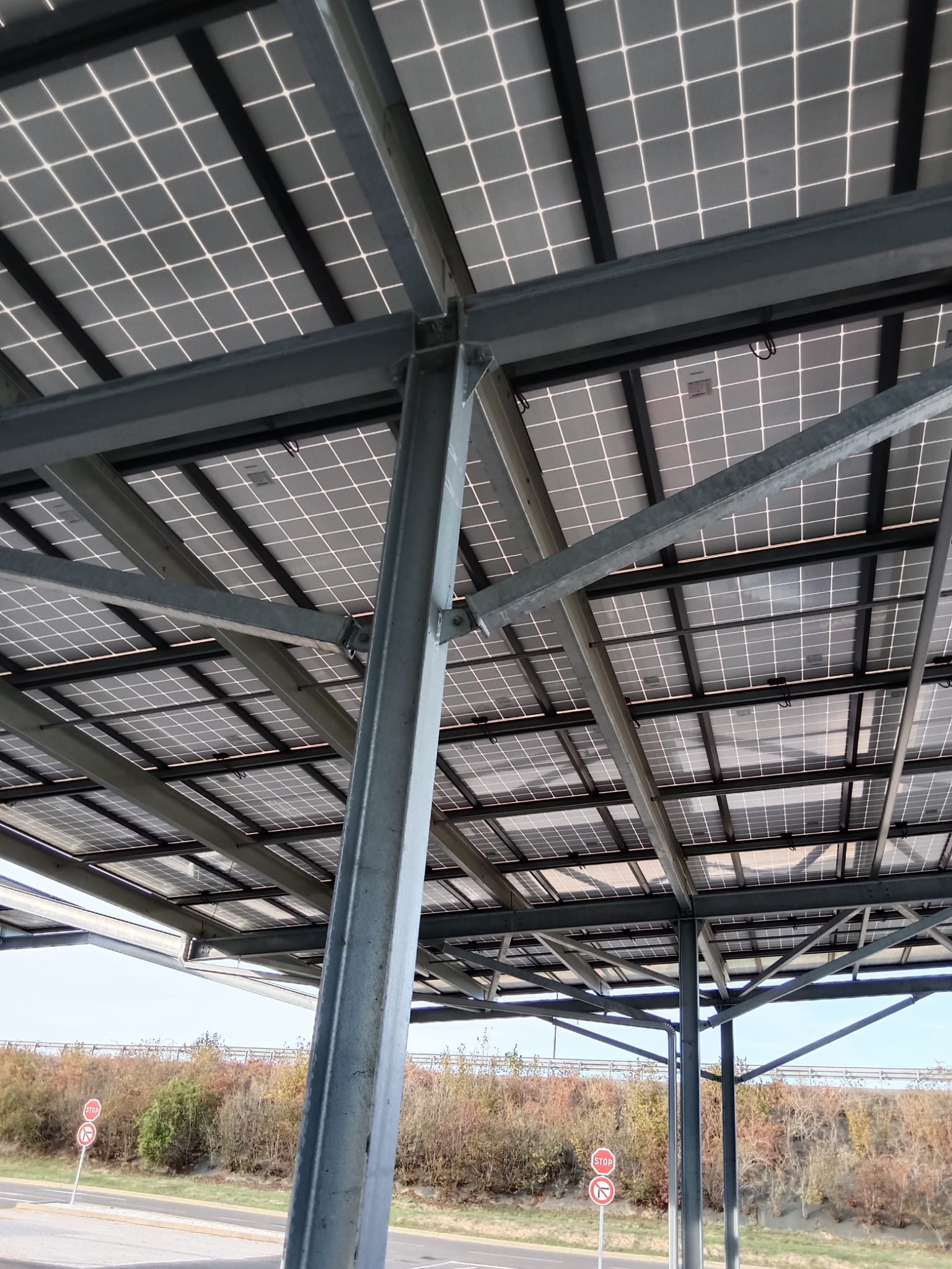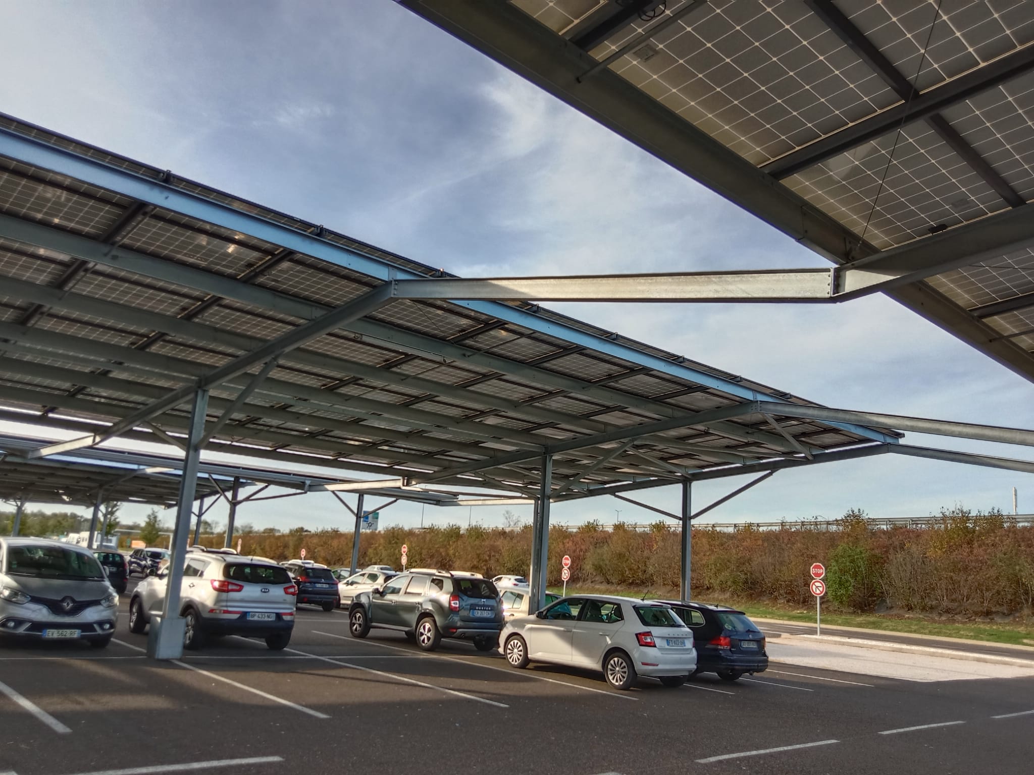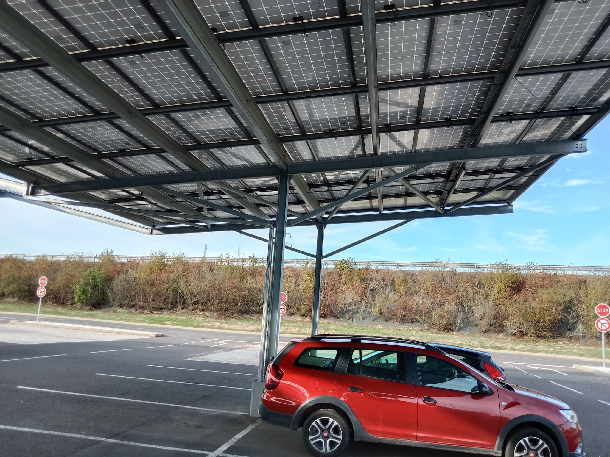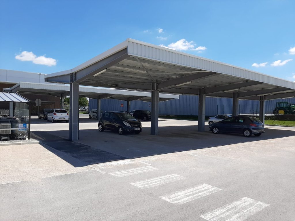 Une ombrière solaire est une structure métallique permettant de garer les voitures ou les camions à l’ombre sur un parking. On parle d’ombrière photovoltaïque lorsque celle-ci est surmontée d’un panneau solaire. Ces ombrières permettent aux voitures de rester à l’ombre tout en produisant de l’électricité verte.